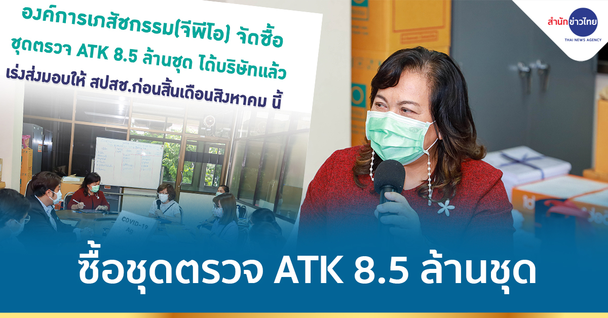 กทม. 11 ส.ค.-องค์การเภสัชกรรม (จีพีโอ) จัดซื้อชุดตรวจ ATK 8.5 ล้านชุด ได้บริษัทแล้ว ประหยัดลง 400 ล้านบาท เร่งส่งมอบ สปสช. กระจายให้กับประชาชนก่อนสิ้นเดือนสิงหาคมนี้ คาดว่าหลังจากนี้จะทำให้ราคา ATK ในท้องตลาด ราคาต่ำลงมากกว่าในปัจจุบัน