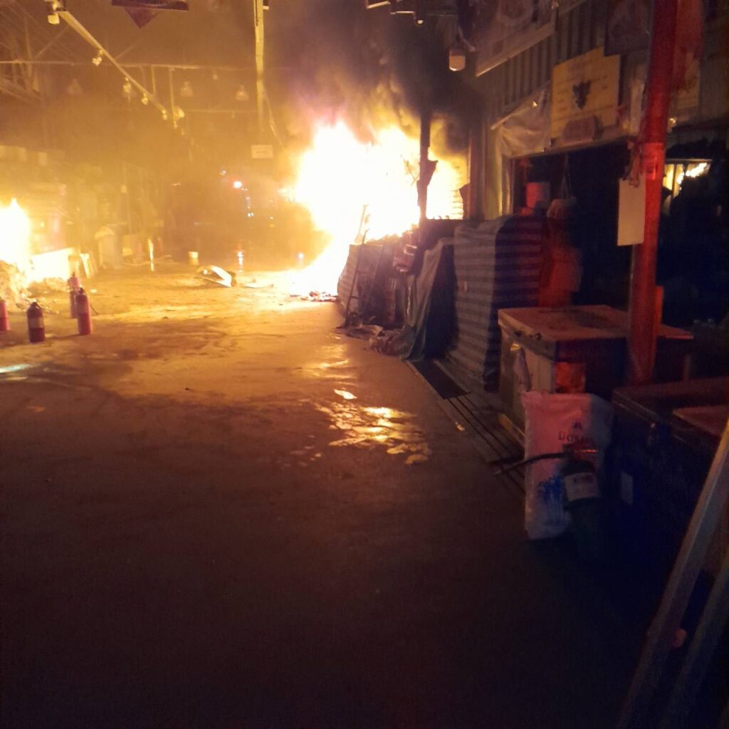 นายทนงศักดิ์ อายุ 70 ปี เป็น รปภ. บอกว่า มีคนมาบอกตนว่าเห็นควันไฟ ออกมาจากทางร้านด้านหลัง ตนจึงรีบมองหา พอมาถึงเห็นไฟไหม้เต็มร้านแล้ว แต่ไม่รู้ว่ามาจากห้องไหน ด้านหลังร้านค้าจะเป็นห้องพักแม่ค้าในตลาด ต่อมาจะเป็นที่เก็บของแม่ค้า มีถังแก๊สหลายถัง