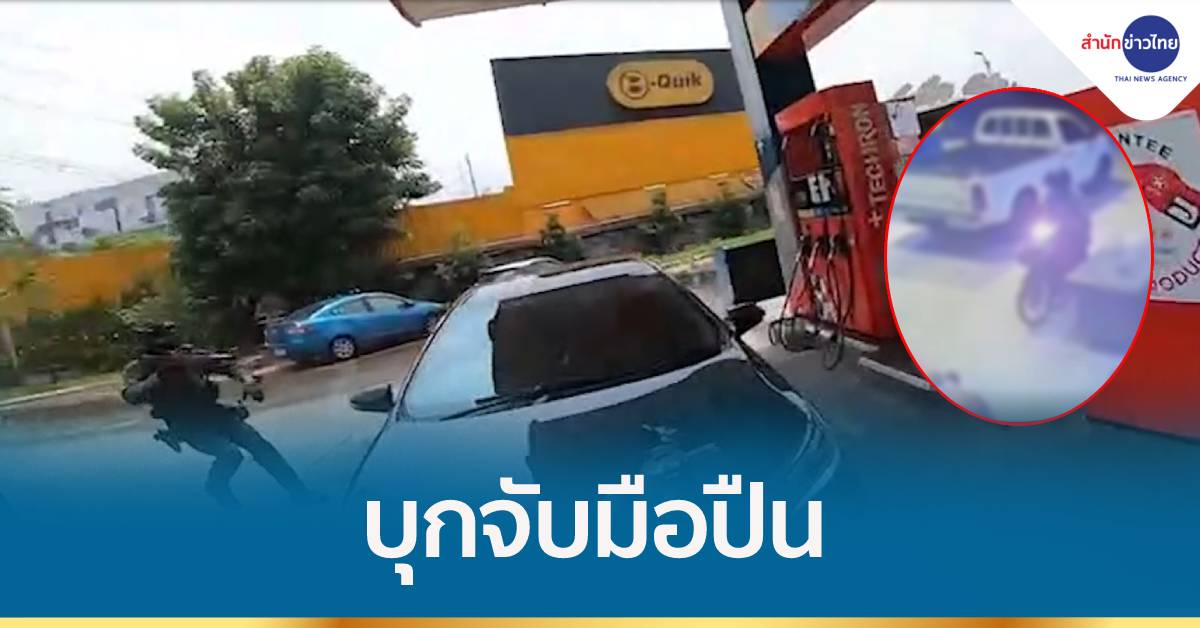 วินาทีที่ตำรวจบุกไปจับนายปิติ อายุ 54 ปี คาปั๊มน้ำมันแห่งหนึ่งย่านประชานุกูล แขวงลาดยาว เขตจตุจักร ซึ่งเป็นมือปืนที่ก่อเหตุยิงนายมานพ เสถียรเขตต์ จากนั้นคุมตัวไปตรวจค้นที่บ้านเช่า หลังศาลาว่าการกรุงเทพมหานคร เพื่อพาไปชี้จุดทิ้งเสื้อ กางเกง และรองเท้าที่ใช้ในวันก่อเหตุ บริเวณที่ทิ้งขยะไม่ไกลจากห้องเช่า