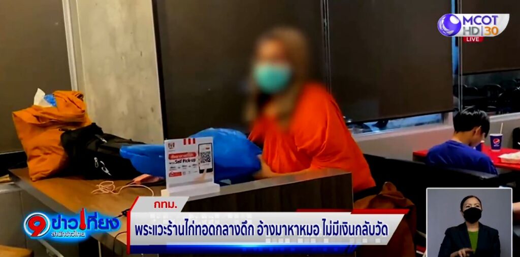 กรุงเทพฯ 5 ก.ย. – เช้ามืดวันนี้มีภาพชายห่มเหลืองนั่งเปิดโน้ตบุ๊กเล่นเน็ตอยู่ในร้านขายไก่ทอดชื่อดัง ชาวบ้านเห็นแล้วรู้สึกไม่สบายใจ เพราะเห็นมาแบบนี้ 2 คืนแล้ว จึงแจ้งตำรวจตรวจสอบ