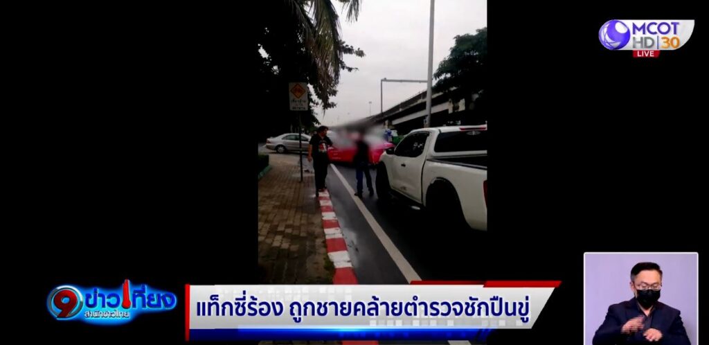 กรุงเทพฯ 27 ก.ย. – ผู้ก่อตั้งเพจสายไหมต้องรอดพาคนขับแท็กซี่เข้าแจ้งความ สน.โคกคราม ถูกชายมีลักษณะคล้ายตำรวจชักปืนออกมายิงข่มขู่ หลังขับปาดหน้ากัน บนถนนประดิษฐ์มนูธรรม
