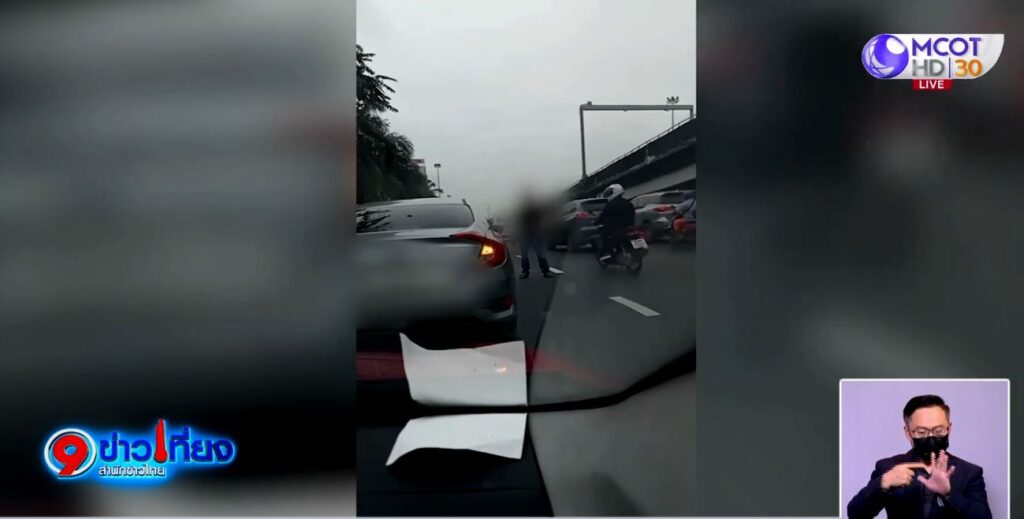จากนั้นคู่กรณีได้ขับรถไล่ตาม และปาดหน้า จึงตัดสินใจจอดรถเพื่อลงไปตกลงกัน แต่ฝ่ายคู่กรณีซึ่งดูเหมือนคนเมาสุราได้ชักอาวุธปืนมาข่มขู่ จึงบอกให้ใจเย็นๆ เมื่อสบโอกาสจึงขึ้นรถขับหนีออกมาทันที จากนั้นคู่กรณีก็ยิงปืนไล่หลังตามมา ส่วนเหตุการณ์ที่เกิดขึ้นทำให้รู้สึกความไม่ปลอดภัย จึงไปร้องเรียนขอความช่วยเหลือกับเพจสายไหมต้องรอด เพราะถ้าคู่กรณีเป็นตำรวจจริง เกรงว่าจะไม่ได้รับความเป็นธรรม