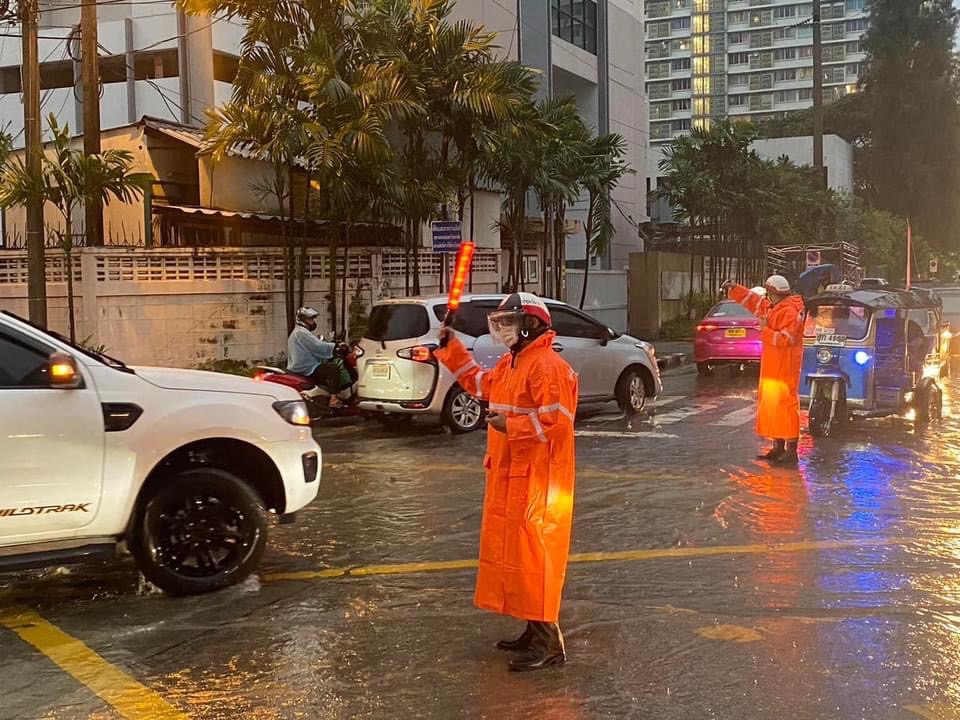 ขณะที่ ช่วงเย็นวานนี้ (7 ต.ค.) เกิดฝนตกหนักภายในกรุงเทพมหานคร และพื้นที่ปริมณฑล ส่งผลให้เกิดน้ำท่วมขัง บริเวณผิวถนนทำให้เกิดการจราจรติดขัดเป็นจำนวนมาก กองบัญชาการตำรวจนครบาล ได้ให้ตำรวจจราจรของแต่ละสถานี รวมถึง กองบังคับการตำรวจจราจร ออกอำนวยความสะดวกการจราจร และบริการดูแลจัดรถรับส่งประชาชนพื้นที่ ที่มีน้ำท่วมขัง เช่นเดียวกับในพื้นที่ต่างจังหวัด