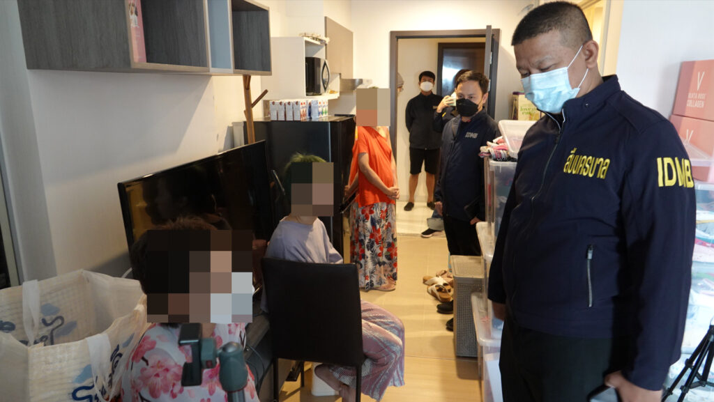 พล.ต.ท.ธิติ แสงสว่าง ผบช.น. เข้าร่วมทำการสืบสวนด้วยตนเอง พร้อมเจ้าหน้าที่ที่เกี่ยวข้อง ต่อมาวันที่ 16 ต.ค. 65 เวลา 10.00 น. พล.ต.ต.ธีรเดช ธรรมสุธีร์ ผบก.สส.บช.น. นำกำลังเจ้าหน้าที่ บก.สส.บช.น. เข้าตรวจสอบห้องพักคอนโดฯ ถ.อรุณอมรินทร์ แขวงบางยี่ขัน เขตบางพลัด ผลการตรวจค้นพบหญิง 3 คน 1. น.ส.ไพริน (นามสมมุติ) อายุ 46 ปี 2. น.ส.พลอย (นามสมมุติ) อายุ 34 ปี 3.น.ส.ไข่มุก (นามสมมุติ) อายุ 48 ปี 4.ด.ญ.อายุ 10 ปี บุตรของ น.ส.ไพริน และ 5.ด.ช.อายุ 6 ปี บุตรของ น.ส.ไพริน ถูกจับแต่งกายเป็นผู้หญิง