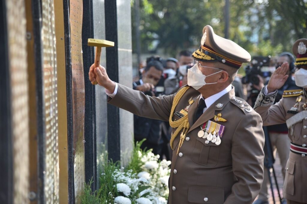 ก่อนพิธีสวนสนามจะเริ่มขึ้น ผบ.ตร. ได้ประกอบพิธีวางพานพุ่มถวายสักการะพระบรมราชานุสาวรีย์ รัชกาลที่ 5 ต่อมาได้กล่าว สดุดีข้าราชการตำรวจ พร้อมกับประกอบพิธีประกาศเกียรติคุณข้าราชการตำรวจที่เสียชีวิตจากการปฏิบัติหน้าที่ ประจำปี 2564 พร้อมตรึงหมุดแผ่นจารึกรายชื่อข้าราชการตำรวจที่จบการศึกษาจาก รร.นรต. และเสียชีวิตจากการปฏิบัติหน้าที่ บริเวณแท่นจารึกที่ 10 อนุสาวรีย์ผู้พิทักษ์รับใช้ประชาชน ก่อนเดินทางเข้าสู่พิธีการสวนสนาม