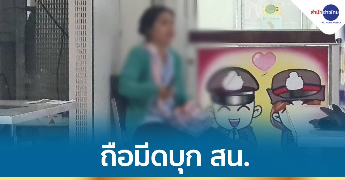กรุงเทพฯ 18 ต.ค.- สาวเครียดแฟนหนี ถือมีดจี้คอตัวเอง บุก สน.แสมดำ ให้ตำรวจช่วยตามแฟนให้ เจ้าหน้าที่เกลี้ยกล่อมกว่า 1 ชม. ก่อนอาศัยจังหวะเข้าชาร์จแย่งมีดไว้ได้