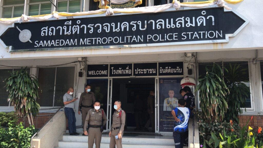 เมื่อเวลา 14.30 น. วันนี้ (17 ต.ค.) ขณะตำรวจ สน.แสมดำ ปฏิบัติหน้าที่อยู่บนสถานี ได้มีหญิงสาวอายุประมาณ 40-45 ปี เดินขึ้นมาบนโรงพัก พร้อมอาวุธปีดปลายแหลมความยาวประมาณ 30 เซนติเมตร โดยมีดจี้ที่คอตัวเองแล้วเดินไปหาสิบเวรวิทยุ แล้วแจ้งให้ตำรวจติดต่อแฟนหนุ่มของตัวเอง เพราะว่าตนเองนั้นติดต่อแฟนหนุ่มไม่ได้ โดยทราบว่าแฟนหนุ่มซึ่งมีอาชีพขับรถแท็กซี่ เก็บข้าวของออกจากห้องพักไป ตนเลยเดินทางมาสถานีตำรวจ เพื่อให้ตำรวจช่วยติดต่อและติดตามมาให้ โดยเจ้าหน้าที่ใช้เวลาประมาณ 1 ชั่วโมง เกลี้ยกล่อมให้ผู้ก่อเหตุเดินไปหา ผกก.สน. และอาศัยจังหวะนั้นบุกเข้าชาร์จและแย่งมีดไว้ได้