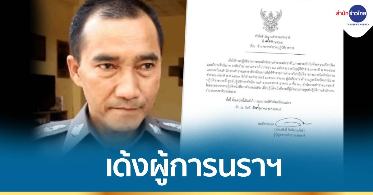 ผู้สื่อข่าวรายงานว่า สำนักงานตำรวจแห่งชาติ (ตร.) พล.ต.อ.ดำรงศักดิ์ กิตติประภัสร์ ผู้บัญชาการตำรวจแห่งชาติ (ผบ.ตร.) มีหนังสือคำสั่ง ตร. เลขที่ 463/2565 ลงวันที่ 19 ต.ค. เรื่อง ข้าราชการตำรวจปฏิบัติราชการ ใจความว่า เพื่อให้การปฏิบัติราชการของสำนักงานตำรวจแห่งชาติในภาพรวมเป็นไปด้วยความเรียบร้อย และมีประสิทธิภาพ อาศัยอำนาจตามความในมาตรา 63 แห่งพระราชบัญญัติตำรวจแห่งชาติ พ.ศ.2565 และระเบียบสำนักงานตำรวจแห่งชาติว่าด้วยการสั่งให้ข้าราชการตำรวจไปปฏิบัติราชการภายในสำนักงานตำรวจแห่งชาติ พ.ศ.2563