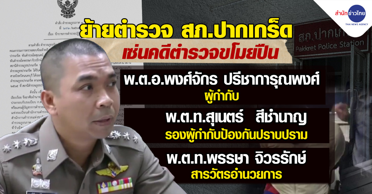 นนทบุรี 21 ต.ค. – ผบช.ภ.1 มีคำสั่งตั้งกรรมการสอบข้อเท็จจริงคดี ด.ต.ขโมยปืน และย้าย ผกก.สภ.ปากเกร็ด พร้อมพวก รวม 3 นาย ไปปฏิบัติราชการที่ศูนย์ฯ ตำรวจภูธรภาค 1