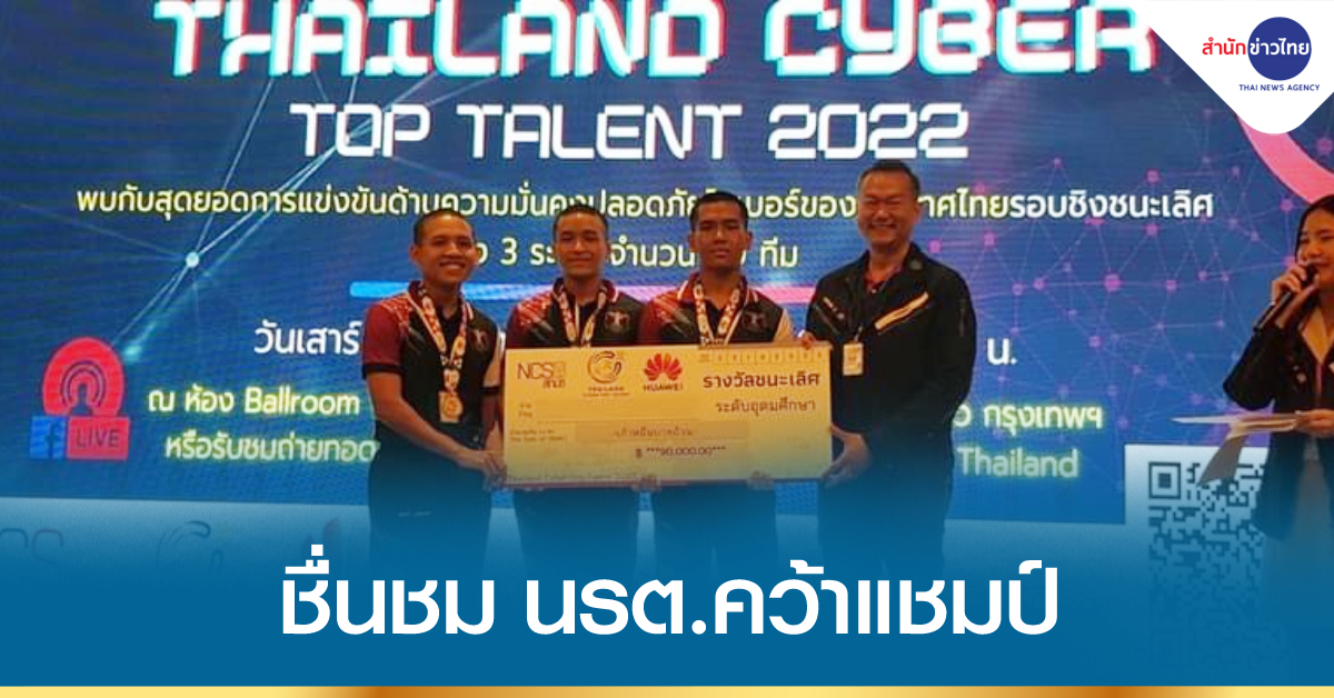 เมื่อวันที่ 23 ตุลาคม 2565 ที่สำนักงานตำรวจแห่งชาติ (ตร.) พล.ต.ต.อาชยน ไกรทอง โฆษกสำนักงานตำรวจแห่งชาติ เปิดเผยว่า พล.ต.อ.ดำรงศักดิ์ กิตติประภัสร์ ผู้บัญชาการตำรวจแห่งชาติ (ผบ.ตร.) ชื่นชมผลงานของ “นักเรียนนายร้อยตำรวจ” ตัวแทนจากชมรมไซเบอร์ จากโรงเรียนนายร้อยตำรวจ ที่คว้ารางวัลชนะเลิศ Thailand Cyber Top Talent 2022 การแข่งขันด้านความมั่นคงปลอดภัยไซเบอร์ระดับประเทศ โดยสำนักงานคณะกรรมการการรักษาความมั่นคงปลอดภัยไซเบอร์แห่งชาติ (สกมช.) จัดการแข่งขันด้านความมั่นคงปลอดภัยไซเบอร์ระดับประเทศ รายการ Thailand Cyber Top Talent 2022 ที่โรงแรมเซ็นทาราแกรนด์ เซ็นทรัลพลาซา กรุงเทพมหานคร เมื่อวันที่ 22 ตุลาคม 2565 ที่ผ่านมา โดยมีทีมนักเรียน นิสิต นักศึกษา และประชาชนทั่วไปจากทั่วประเทศ เข้าร่วมการแข่งขัน 393 ทีม และมีทีมที่เข้ารอบสุดท้าย 30 ทีม