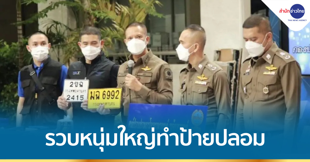 พล.ต.ต.จิรสันต์ แก้วแสงเอก โฆษกกองบัญชาการตำรวจนครบาล แถลงผลการจับกุมแหล่งผลิตป้ายทะเบียนรถยนต์ปลอม ที่ร้านรับซ่อมแซมแผ่นป้ายทะเบียนรถยนต์รถจักรยานยนต์ b&m modify ริมถนนเลียบคลองสาม ตำบลคลองสาม อำเภอคลองหลวง จังหวัดปทุมธานี พร้อมของกลางเป็นเครื่องคอม้าใช้สำหรับอัดตัวอักษรและตัวเลขลงบนแผ่นป้ายทะเบียน 1 เครื่อง เครื่องปั๊มลงตัวอักษร ขส. 1 เครื่อง แผ่นอะคริลิคตัวอักษรและเลขอารบิกจำนวนมากรวมถึงตัวปั๊มหมวดป้ายทะเบียนจังหวัดต่าง ๆ รวมของกลางกว่า 300 ชิ้น พร้อมจับกุมผู้ต้องหา 1 คน คือนายรณชัย อายุ 46 ปี