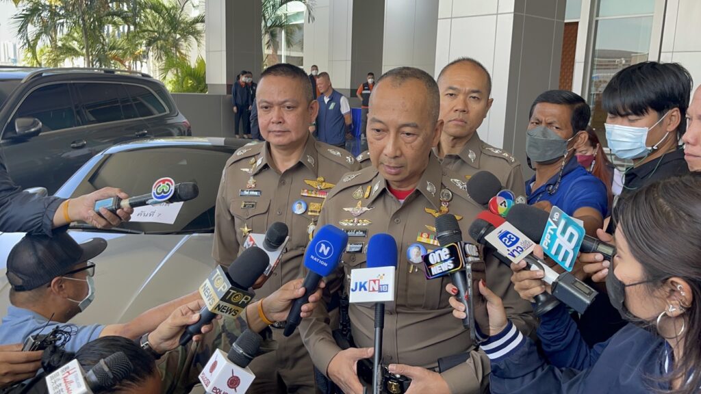 พล.ต.อ.ต่อศักดิ์ สุขวิมล รองผู้บัญชาการตำรวจแห่งชาติ ร่วมกับตำรวจกองบัญชาการสืบสวนสอบสวนอาชญากรรมทางเทคโนโลยี หรือตำรวจไซเบอร์ แถลงปฏิบัติการขยายผลจับกุมแก๊งคอลเซ็นเตอร์ ซึ่งเชื่อมโยงมาจากการจับกุมสถานบริการจินหลิง สามารถยึดทรัพย์สิน อาทิ รถหรู เงินสด และกระเป๋าแบรนด์เนม รวมมูลค่าหลายร้อยล้านบาท