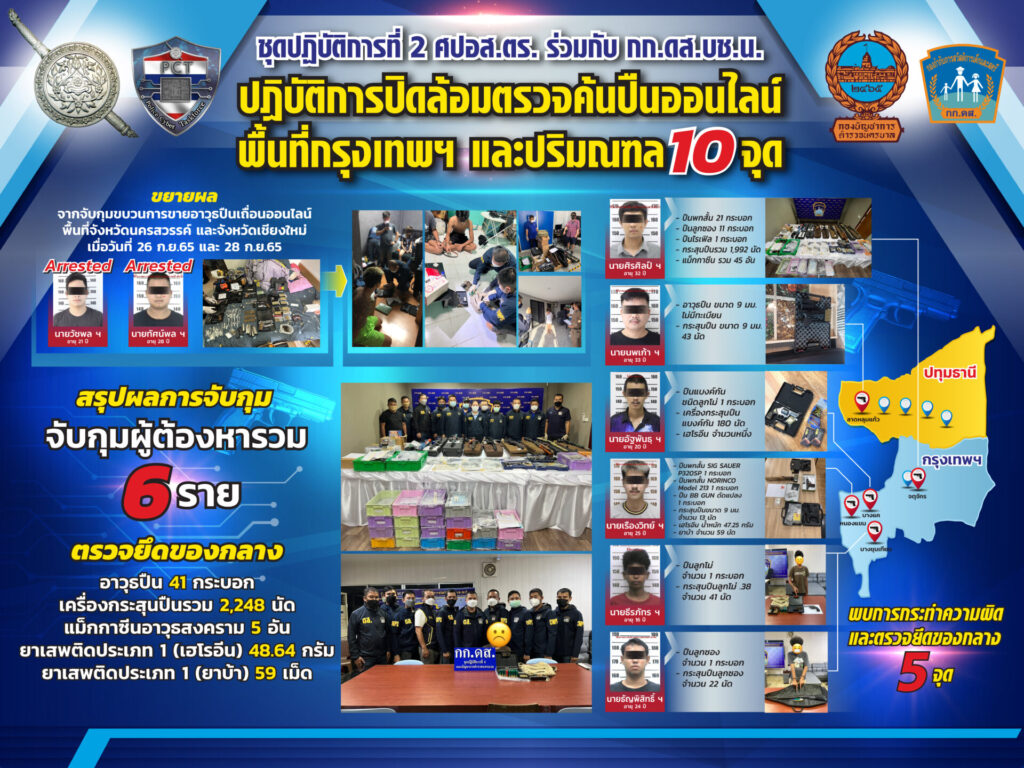 เวลา 12.00.น. พล.ต.ต.จิรสันต์ แก้วแสงเอก รองผู้บัญชาการตำรวจนครบาลในฐานะโฆษกนครบาล พร้อมด้วย พล.ต.ต.นิตินันท์ เพชรบรม รองผู้บัญชาการตำรวจนครบาล แถลงผลการกวาดล้างขบวนการค้าอาวุธปืนออนไลน์ เตรียมพร้อมรับการประชุมเอเปค 2022