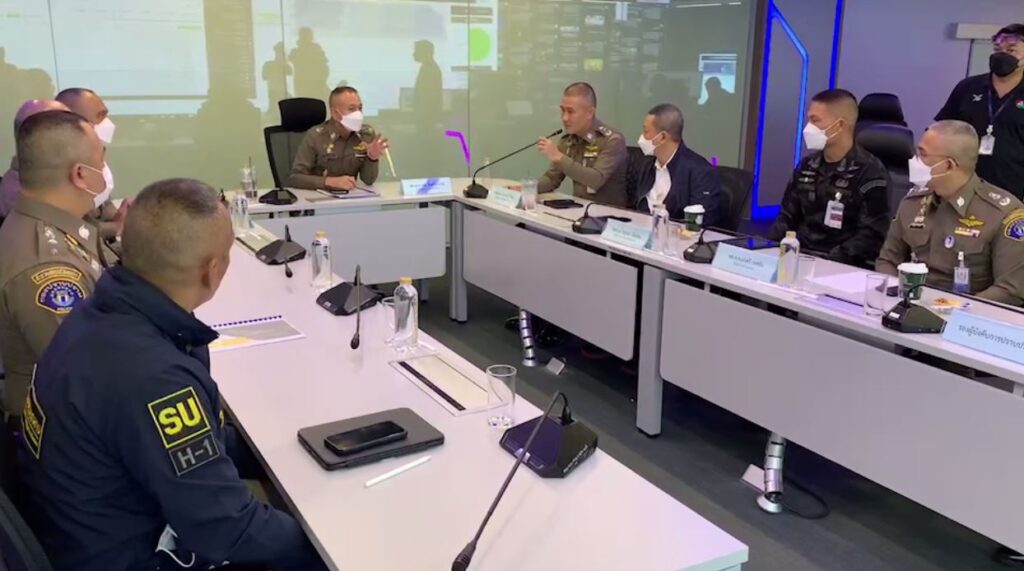 พล.ต.อ.รอย อิงคไพโรจน์ รองผู้บัญชาการตำรวจแห่งชาติ ตรวจเยี่ยมและประชุมที่ศูนย์บริหารติดตามสถานการณ์และปฏิบัติการด้านการข่าว รองรับการประชุมผู้นำเขตเศรษฐกิจ APEC 2022 Thailand ที่ห้อง Real Time Crime Center (RTCC) กองบัญชาการตำรวจสอบสวนกลาง โดยมี พล.ต.ท.จิรภพ ภูริเดช ผู้บัญชาการตำรวจสอบสวนกลาง และตัวแทนหน่วยงานที่เกี่ยวข้อง มาร่วมประชุมรายงานความคืบหน้าสถานการณ์ล่าสุด