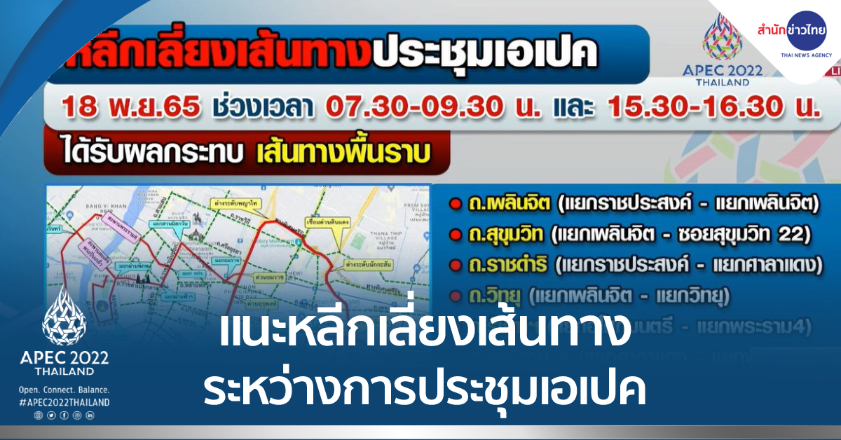 กรุงเทพฯ 18 พ.ย. – วันนี้ (18 พ.ย.) มีการปิดถนนหลายเส้นทางระหว่างการประชุมเอเปค ทำให้พื้นที่รอบๆ ได้รับผลกระทบ เส้นทางที่ควรหลีกเลี่ยง ดังนี้