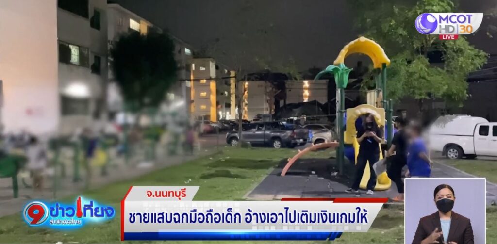 ภาพจากกล้องวงจรปิด ที่จับภาพชายอายุประมาณ 30 ปี รูปร่างท้วม สวมเสื้อสีแดง กางเกงขาสั้นสีดำ สะพายกระเป๋าสีดำ เข้ามาหลอกเด็ก 3 คน และเดินพาเด็กมุ่งหน้าออกจากบริเวณหมู่บ้านแห่งหนึ่งในอำเภอปากเกร็ด จังหวัดนนทบุรี ซึ่งเด็ก 2 ใน 3 คน คือลูกชายของนางสาวมนัชญา พันธุ์มณี วัย 11 ขวบ และ 9 ขวบ ส่วนเด็กอีกคนคือเพื่อนของลูกอายุ 9 ขวบ เหตุเกิดช่วงเวลาประมาณ 15.00 น. ของวันที่ 27 พ.ย. มิจฉาชีพชายได้เข้ามาหลอกล่อเด็กทั้ง สามว่า สามารถเติมเงินเข้าเกมให้ได้และจะพาไปซื้อขนม พร้อมกับมีพาวเวอร์แบงก์ให้เด็กชาร์จแบตมือ แถมมี wifi ให้ใช้ฟรี ทำให้เด็กทั้งหมดหลงเชื่อ เอามือถือให้ชายคนนี้ไป นอกจากนี้ ยังหลอกล่อเด็กด้วยการพาไปร้านสะดวกซื้อ แล้วทิ้งเงิน 120 บาท ไว้ให้ บอกให้เอาไปซื้อขนม จากนั้นฉกมือถือที่เด็กให้ไปตอนแรก ขึ้นรถโดยสารหลบหนีไป