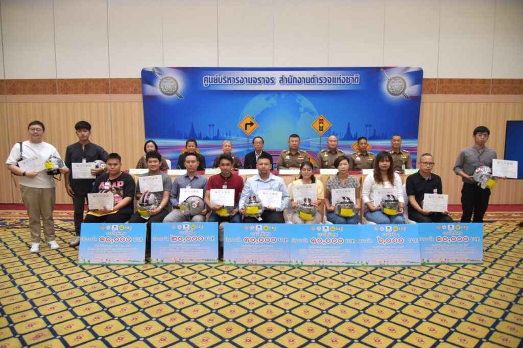 ทั้งนี้ เมื่อเสร็จพิธีมอบเงินรางวัลแล้ว ผบ.ตร. และผู้บริหารของสำนักงานตำรวจแห่งชาติ ได้มอบหมวกนิรภัยให้ ประชาชน สื่อมวลชน และหน่วยงานภาคีเครือข่ายที่มาร่วมพิธี เพื่อรณรงค์เรื่องการสวมหมวกนิรภัย 100% ตามนโยบายของรัฐบาล ผบ.ตร.ยังกล่าวเพิ่มเติมว่าปัจจุบันอุบัติเหตุทางถนนจะเกิดจากปัจจัยของผู้ขับขี่เป็นสำคัญ หากทุกคนร่วมกันปฏิบัติตามกฎจราจร และร่วมกันสอดส่อง ตรวจตราการทำผิดบนท้องถนน ก็จะช่วยสร้างสังคมขับขี่ปลอดภัย สามารถลดอุบัติเหตุทางถนนได้ตามเป้าหมายที่รัฐบาลกำหนดอย่างเป็นรูปธรรม. -สำนักข่าวไทย