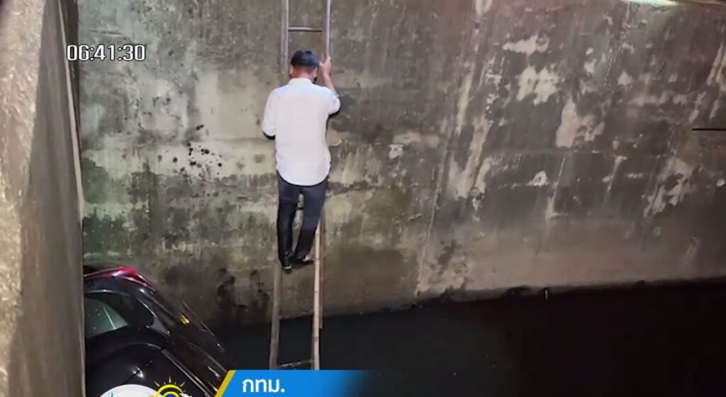 วานนี้ (11 ธ.ค.65) เมื่อเวลา 22.55 น. เจ้าหน้าที่ตำรวจ สน.โชคชัย พร้อมเจ้าหน้าที่อาสาสมัครมูลนิธิร่วมกตัญญู เข้าตรวจสอบเหตุรถเก๋งเสียหลักพุ่งตกลงคลองคลองส่งน้ำใกล้ซอยประดิษฐ์มนูธรรม 21 ถนนประดิษฐ์มนูธรรม แขวงลาดพร้าว เขตลาดพร้าว กทม. ที่เกิดเหตุเป็นคลองระบายน้ำมีความสูงประมาณ 3 เมตร กว้าง 5 เมตร พบรถยนต์เก๋งยี่ห้อ Mazda 2 สีดำ ทะเบียนกรุงเทพมหานคร สภาพหัวปักทิ่มลง จมลงไปในคลองเกือบครึ่งคัน
