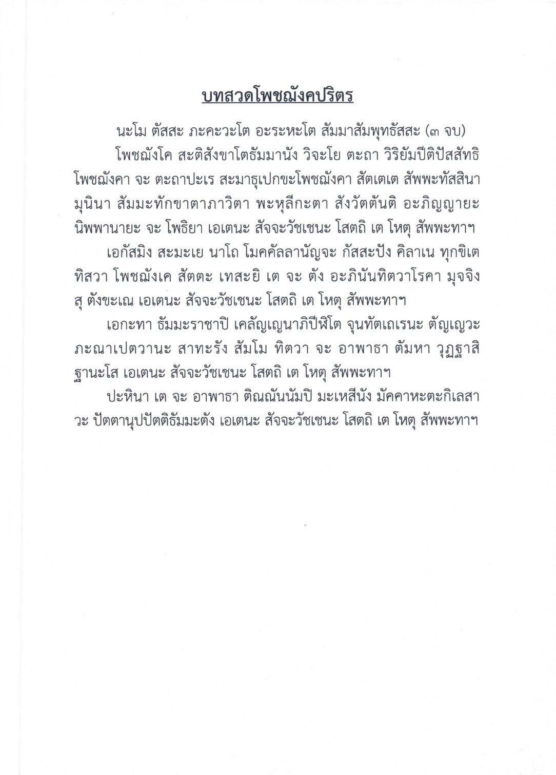ทั้งนี้ บทสวดโพชฌังคปริตร มีดังนี้
