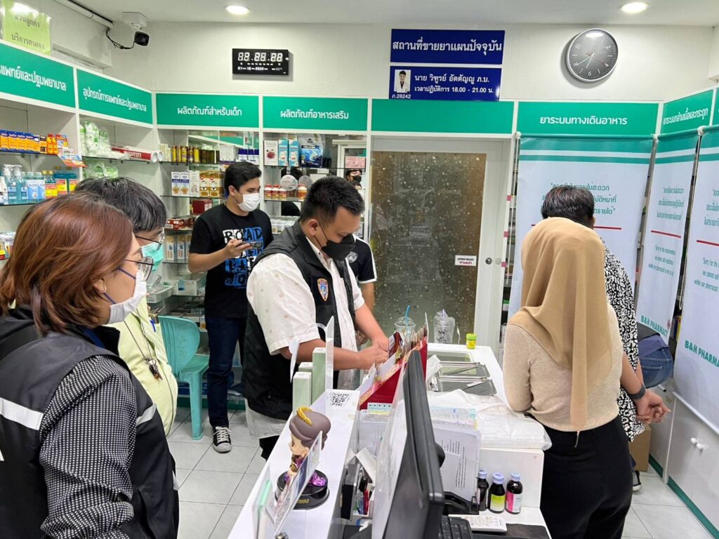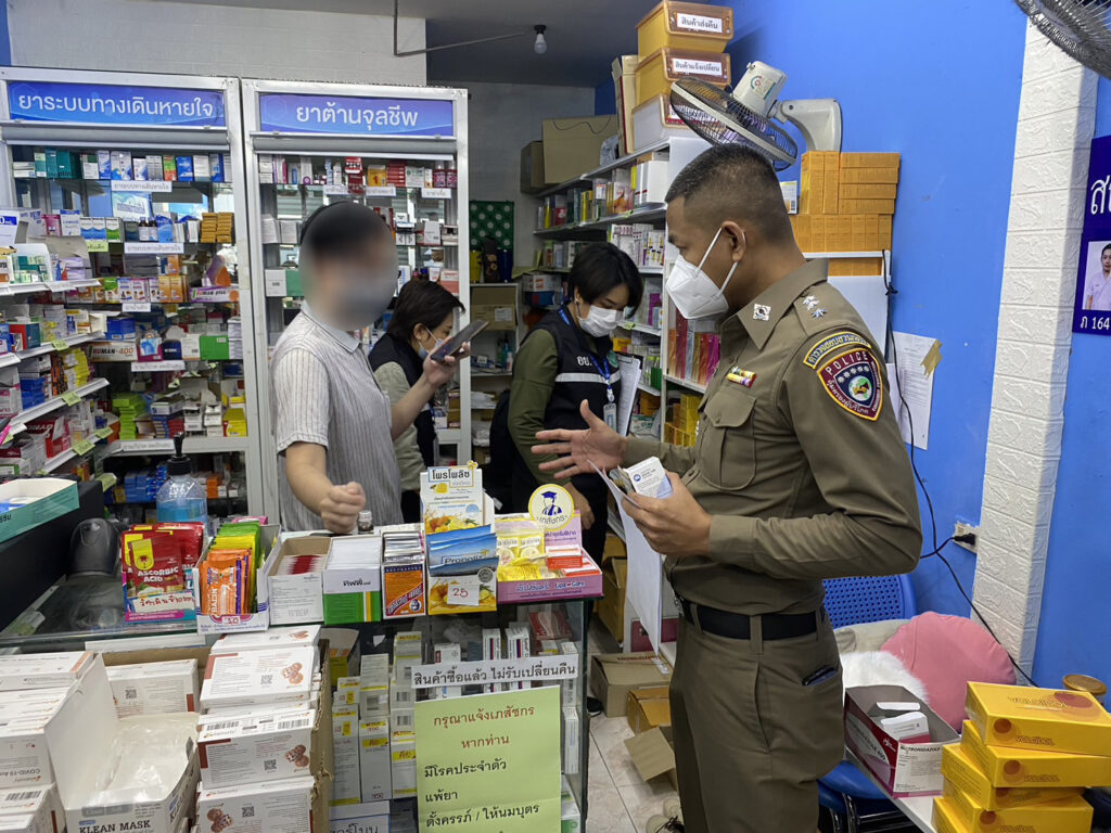 เบื้องต้นจากการตรวจสอบทั้ง 4 ร้านค้า ไม่มีร้านใดมีเภสัชกรอยู่ แต่ให้บุคคลทั่วไปขายยาแทน มีเพียงร้านแรกที่เจ้าของร้านมีพี่สาวเป็นเภสัชกรและเรียนรู้เรื่องยามาจากพี่สาวอีกต่อ ส่วนร้านที่เหลือเป็นลูกจ้าง บางคนจบเพียงชั้นมัธยมศึกษาปีที่ 6 บางคนแม้จะจบปริญญาตรีแต่ก็ไม่ได้มีความรู้หรือมีประสบการณ์เรื่องยามาเลย แต่เพิ่งมาทำงานที่ร้านยาได้แค่ 2 วัน ก็ถูกจับกุม เบื้องต้นตำรวจแจ้งข้อหาความผิดฐานประกอบวิชาชีพเภสัชกรรมฯ โดยไม่ได้ขึ้นทะเบียนและไม่มีใบอนุญาตตาม พ.ร.บ.วิชาชีพเภสัชกรรม และขายยาอันตรายให้ระหว่างที่เภสัชกรไม่อยู่ปฏิบัติหน้าที่ตาม พ.ร.บ.ยา