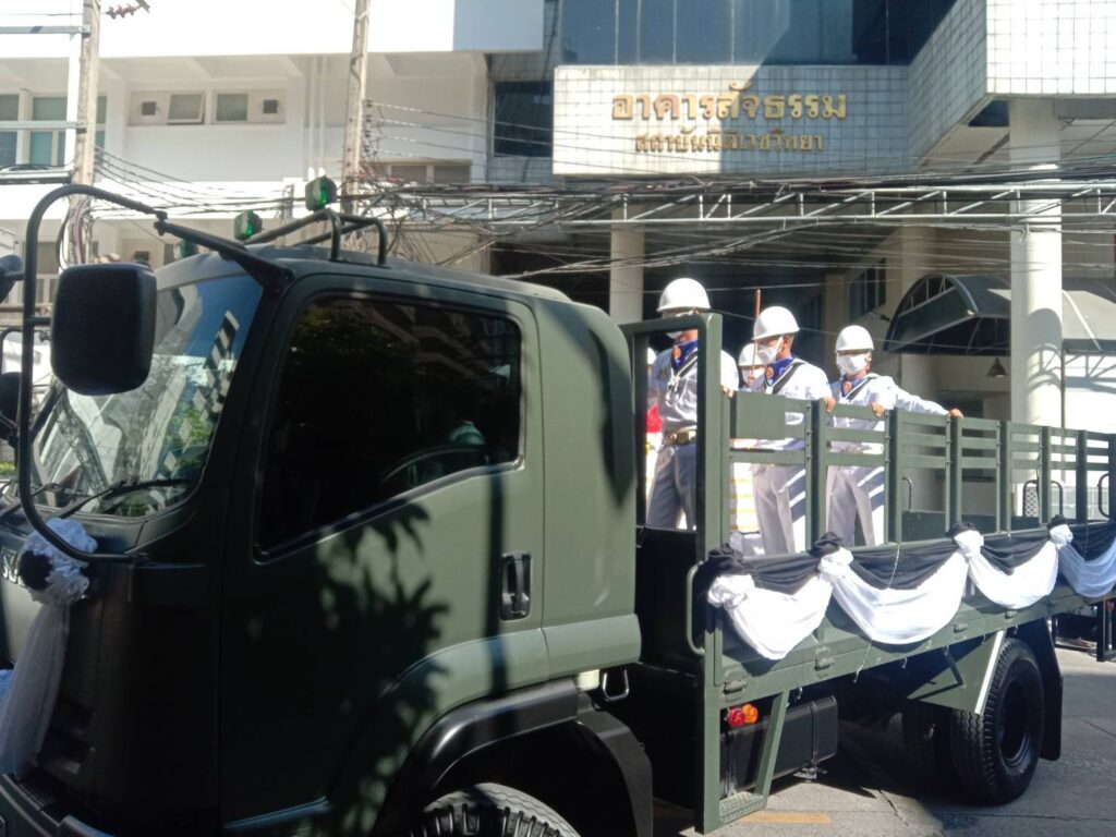รพ.ตำรวจ 26 ธ.ค. – กองทัพเรือส่งรถบรรทุกทางการทหารรับศพ พลทหาร วรพงษ์ บุญละคร กำลังพลที่เสียชีวิตจากเหตุการณ์เรือหลวงสุโขทัยอับปาง รายที่ 7 จากสถาบันนิติเวช รพ.ตำรวจ กลับไปมอบให้ญาติดำเนินพิธีทางศาสนา