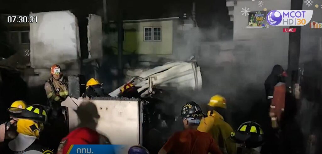 กรุงเทพฯ 27 ธ.ค. – ไฟไหม้บ้านเรือนประชาชน บริเวณหน้าวัดญวน ซอยสามเสน 13 แขวงวชิระ เขตดุสิต กทม. เสียหาย 4 หลัง พบสองแม่ลูกนอนคู่กันเสียชีวิตคากองเพลิง