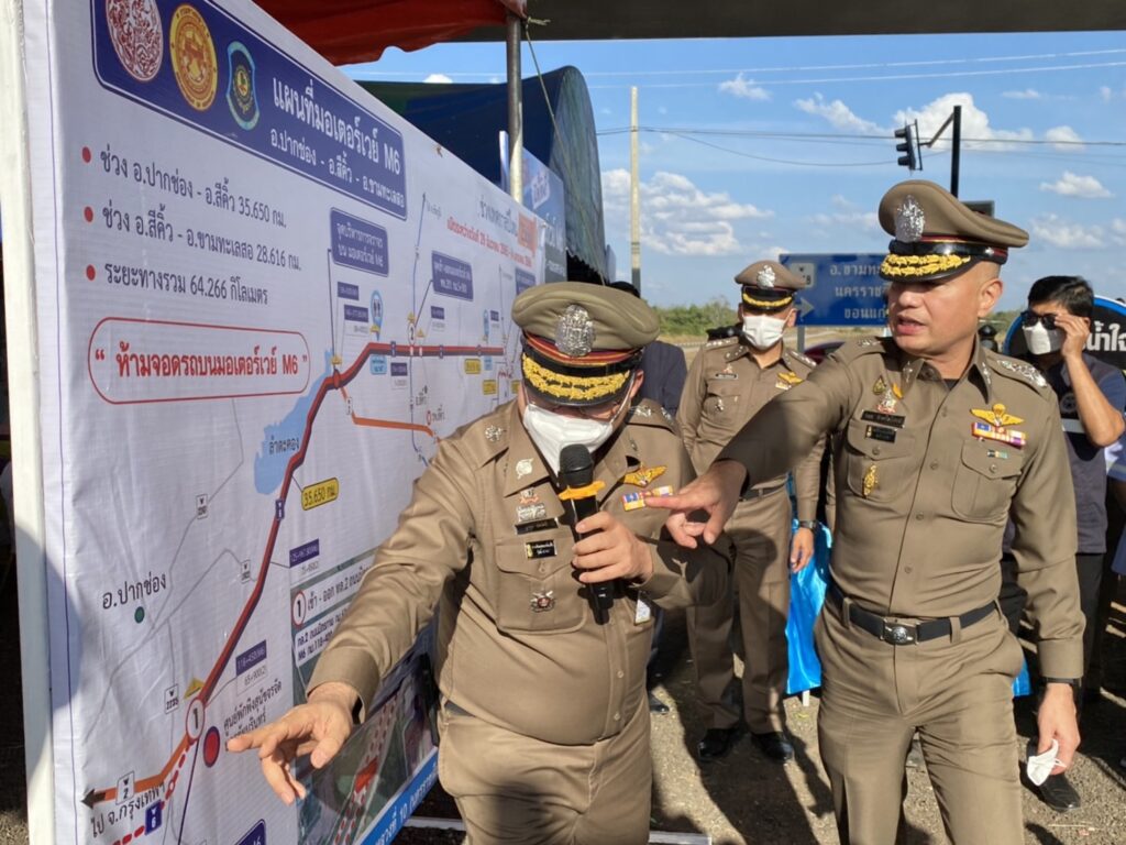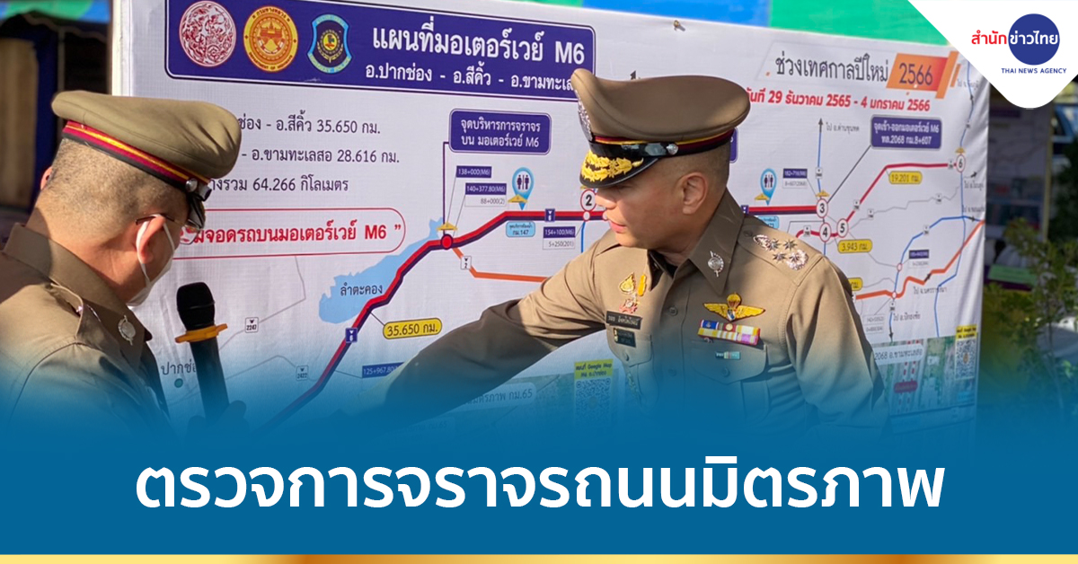 วันที่ 29 ธันวาคม 2565 เวลา 15:30 น. บริเวณจุดระบายรถเชื่อมต่อถนนมอเตอร์เวย์นครราชสีมา(M6) อำเภอขามทะเลสอ จังหวัดนครราชสีมา พล.ต.อ.รอย อิงคไพโรจน์ รอง ผบ.ตร. พร้อมด้วย พล.ต.ท.อภิชาติ เพชรประสิทธิ์ ผบช.ส. พล.ต.ต.เอกราช ลิ้มสังกาศ ผบก.ทล. นั่งเฮลิคอปเตอร์ ตรวจการจราจรถนนมิตรภาพมุ่งหน้าภาคอีสาน ระหว่างเส้นพหลโยธิน จ.สระบุรี มุ่งหน้า จ.นครราชสีมา โดยมี พล.ต.ต. ฐากูร นัทธีศรี รอง ผบช.ภ.3 พล.ต.ต.อิทธิพล นาคคำ ผบก.ภ.จว.นครราชสีมา ให้การต้อนรับ และรายงานสรุปสภาพการจราจร บริเวณถนนมอเตอร์เวย์สายนครราชสีมา