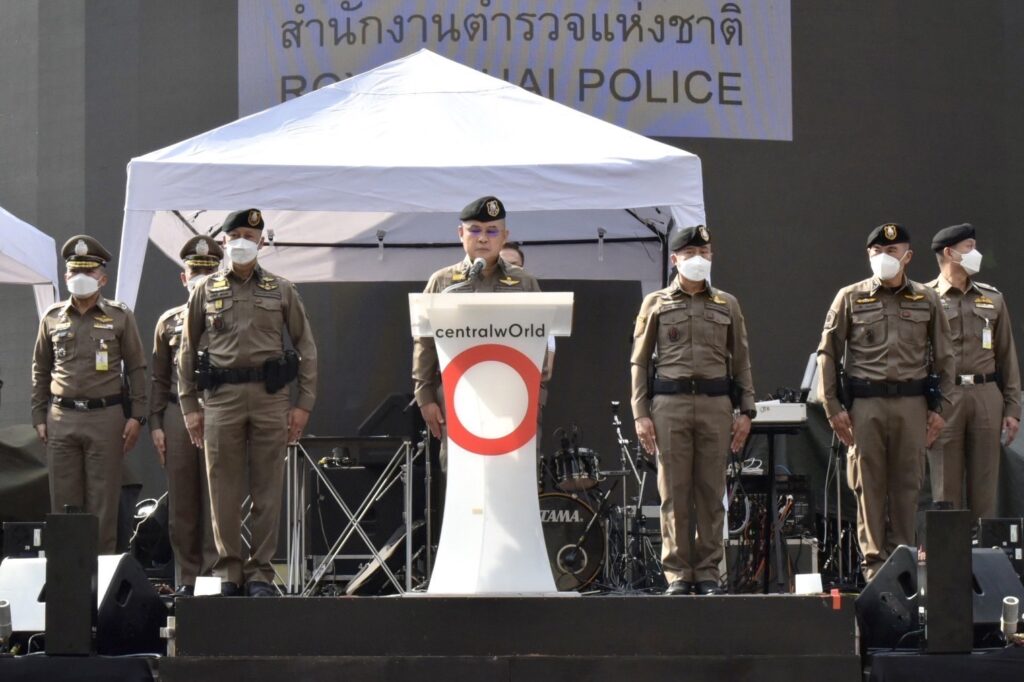 วันนี้ (31 ธ.ค.65) เวลา 15.00 น. ที่ลานเซ็นทรัลเวิลด์ พล.ต.อ.ดำรงศักดิ์ กิตติประภัสร์ ผู้บัญชาการตำรวจแห่งชาติ พร้อมด้วย พล.ต.อ.ต่อศักดิ์ สุขวิมล รอง ผบ.ตร. พล.ต.ท.สำราญ นวลมา ผู้ช่วย ผบ.ตร. พล.ต.ท.ธิติ แสงสว่าง ผบช.น. เดินทางมาตรวจเยี่ยมมาตรการรักษาความปลอดภัยการจัดงานส่งท้ายปีเก่าต้อนรับปีใหม่ 2566