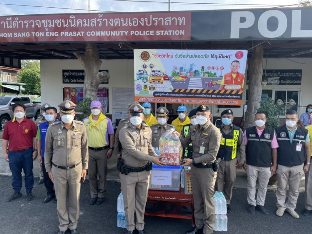 วันนี้ (2 ม.ค.66) เวลา 15.00 น. บริเวณจุดบริการประชาชน ถนนหลวงหมายเลข 24 สถานีตำรวจชุมชนนิคมสร้างตนเองปราสาท อ.ปราสาท จ.สุรินทร์ พล.ต.ท.ภาณุรัตน์ หลักบุญ ผู้ช่วย ผบ.ตร.(ปป.3) กล่าวว่า พล.ต.อ.ดำรงศักดิ์ กิตติประภัสร์ ผบ.ตร. พร้อมทั้ง พล.ต.อ.รอย อิงคไพโรจน์ รอง ผบ.ตร.(มค.,กศ.) และ พล.ต.อ.ต่อศักดิ์ สุขวิมล รอง ผบ.ตร. ได้มอบหมายให้ตนเดินทางมาตรวจเยี่ยมกำลังพล และตรวจการจราจร จุดบริการประชาชนในห้วงวันหยุดยาวเทศกาลปีใหม่ 2566 ของ สภ.ปราสาท จ.สุรินทร์ โดยมี พล.ต.ต.ชาญชัย พงษ์พิชิตกุล ผบก.ภ.จว.สุรินทร์, พ.ต.อ.ชัยณรงค์ บุญด้วง รอง ผบก.ภ.จว.สุรินทร์, พ.ต.อ.ยศศักดิ์ โพธิ์สุวรรณ ผกก.สภ.ปราสาท, เจ้าหน้าที่ฝ่ายปกครอง, เจ้าหน้าที่สาธารณสุข และเจ้าหน้าที่ตำรวจ สภ.ปราสาท ร่วมรับมอบอาหารแห้ง ขนม ผลไม้ และน้ำดื่ม เพื่อเป็นขวัญกำลังใจกำลังพลในการปฏิบัติหน้าที่ต่อไป