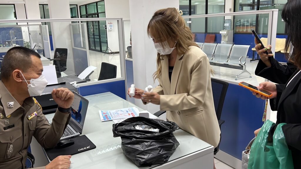 เมื่อเวลา 10.30 น. ที่ศูนย์รับแจ้งความกองบัญชาการตำรวจสอบสวนกลาง ถนนพหลโยธิน จตุจักร กทม. น.ส.สิรินดา ตัลติศิลปพงศ์ และนายศราวุธ ลาภส่งผล กรรมการบริษัท 300 ร่ำรวย (โซลูชั่น) จำกัด ตัวแทนและผู้นำเข้าผลิตภัณฑ์น้ำยาคอนแทคเลนส์แบรนด์ดรีมอาย (dream eye) นำหลักฐานสินค้าปลอมและข้อความที่ลูกค้าแจ้งข้อมูลมามอบให้ ร.ต.อ.ชนัตพล จันพลงาม รองสว.กก.4 บก.ปคบ. เพื่อดำเนินคดีกับเจ้าของร้านค้าในออนไลน์หลายแพลตฟอร์ม หลังตรวจสอบพบว่ามีการจำหน่ายสินค้าน้ำยาคอนแทคเลนส์แบรนด์ดรีมอายปลอม จนมีผู้หลงเชื่อซื้อไปใช้แล้วได้รับความเสียหายเป็นอันตรายต่อดวงตา