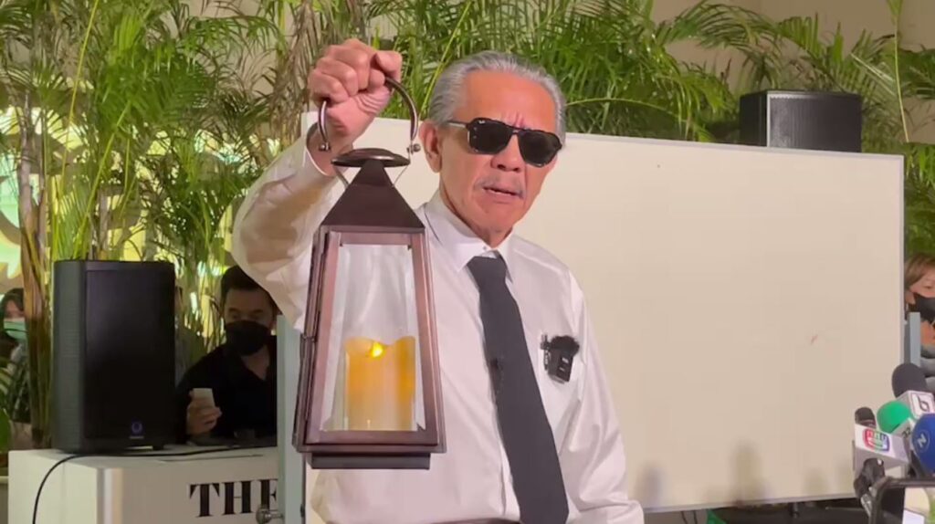 นายชูวิทย์ กมลวิศิษฎ์ แถลงเปิดพฤติการณ์ของขบวนการทุนจีนสีเทาของนายตู้ห่าว และพวก พร้อมการทำงานของเจ้าหน้าที่รัฐ เปิดฉากนายชูวิทย์ ได้จุดตะเกียง เปรียบเทียบว่าบ้านเมืองอยู่ในความมืดมิดไร้ความหวัง ไร้ผู้นำ ในการให้ความยุติธรรม ทั้งยังปักเทียนเปรียบเทียบว่า ผบ.ตร.และอัยการกำลังนั่งเทียนทำสำนวนคดี นั่งทำงานเก็บหลักฐานแบบเว้นวรรค สำนวนลักหลับ ทั้งที่พยานหลักฐานไม่แน่นหนา สำนวนอ่อน