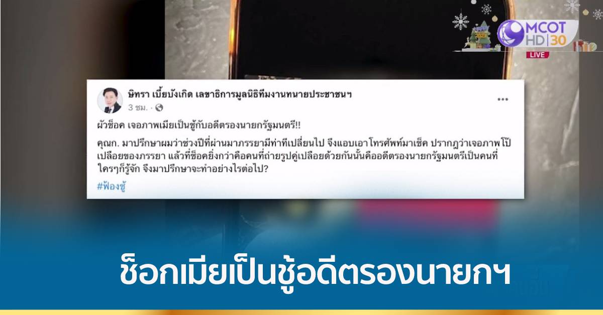 เมื่อช่วงเย็นที่ผ่านมา นายษิทรา เบี้ยบังเกิด หรือ ทนายตั้ม เลขามูลนิธิทีมงานทนายประชาชนฯ ได้โพสต์ข้อความผ่านเฟซบุ๊ก ษิทรา เบี้ยบังเกิด เลขาธิการมูลนิธิทีมงานทนายประชาชนฯ ระบุว่า “ผัวช็อค เจอภาพเมียเป็นชู้กับอดีตรองนายกรัฐมนตรี!! คุณ ก. มาปรึกษา ผมว่าช่วงปีที่ผ่านมาภรรยามีท่าทีเปลี่ยนไป จึงแอบเอาโทรศัพท์มาเช็ค ปรากฎว่าเจอภาพโป๊เปลือยของภรรยา แล้วที่ช็อคยิ่งกว่า คือ คนที่ถ่ายรูปคู่เปลือยด้วยกันนั้น คือ อดีตรองนายกรัฐมนตรีเป็นคนที่ใครๆ ก็รู้จัก จึงมาปรึกษาจะทำอย่างไรต่อไป?” #ฟ้องชู้ ทำให้สร้างความสงสัยว่าเป็นใคร ผู้สื่อข่าวได้พยายามโทรศัพท์สอบถามข้อมูลจาก ทนายตั้ม บอกเพียงสั้นๆ ว่าขอแถลงข่าวและให้ข้อมูลในวันจันทร์ที่ 9 ม.ค.นี้ ทีเดียว ตอนนี้ไม่สะดวกให้ข้อมูลใดๆ