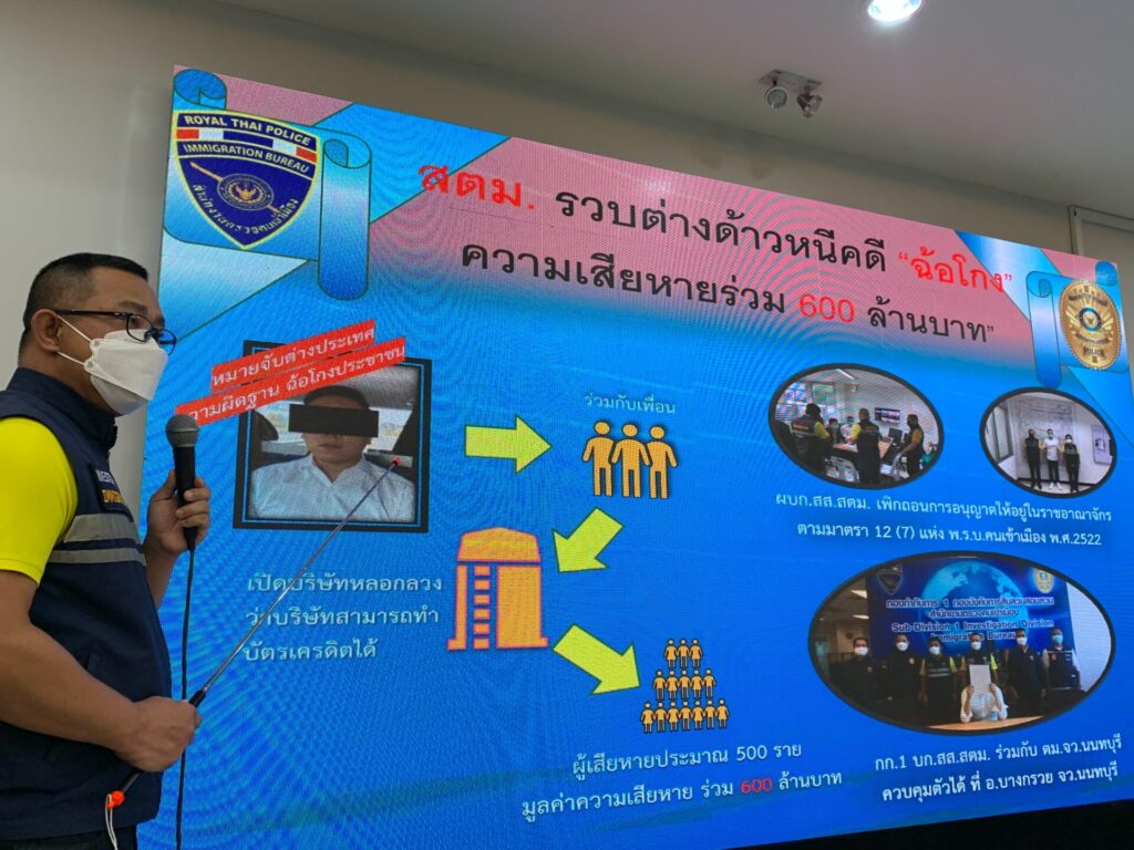 อีกคดีจับกุมนายจง ชาวจีน หลบหนีคดีฉ้อโกงความเสียหายกว่า 600 ล้านบาท โดยจับกุมได้ในพื้นที่อำเภอบางกรวย จังหวัดนนทบุรี หลังเมื่อปี 59 นายจงได้ร่วมกับเพื่อนเปิดบริษัท ในเมืองอู่หั่น และจ้างพนักงานมาทำหน้าที่โทรศัพท์หาลูกค้าชักชวนร่วมลงทุน โดยอ้างว่าบริษัทเป็นบริษัทที่สามารถทำบัตรเครดิตให้ได้จำนวนมาก และสามารถช่วยปลดล็อกเครดิตบูโรได้ ทำให้มีผู้เสียหายหลงเชื่อกว่า 500 ราย มีการจ่ายค่าธรรมเนียมในการทำบัตรเครดิตให้ จากนั้นปิดบริษัทหลบหนี มูลค่าความเสียหายประมาณ 600 ล้านบาท จากนั้นเมื่อ 16 กันยายน 62 ได้ เดินทางเข้าประเทศไทย ทางด่าน ตม.ทอ. สุวรรณภูมิ และได้รับการตรวจลงตราประเภทนักท่องเที่ยว 60 วัน และอนุญาตให้อยู่ในราชอาณาจักรเป็นการชั่วคราวต่อถึงวันที่ 20 กันยายน 66 เบื้องต้นได้เพิกถอนการอนุญาตให้อยู่ในราชอาณาจักร เนื่องจากเป็นบุคคลที่รัฐบาลต่างประเทศได้ออกหมายจับเข้าลักษณะต้องห้ามมิให้เข้ามาในราชอาณาจักรไทย. -สำนักข่าวไทย