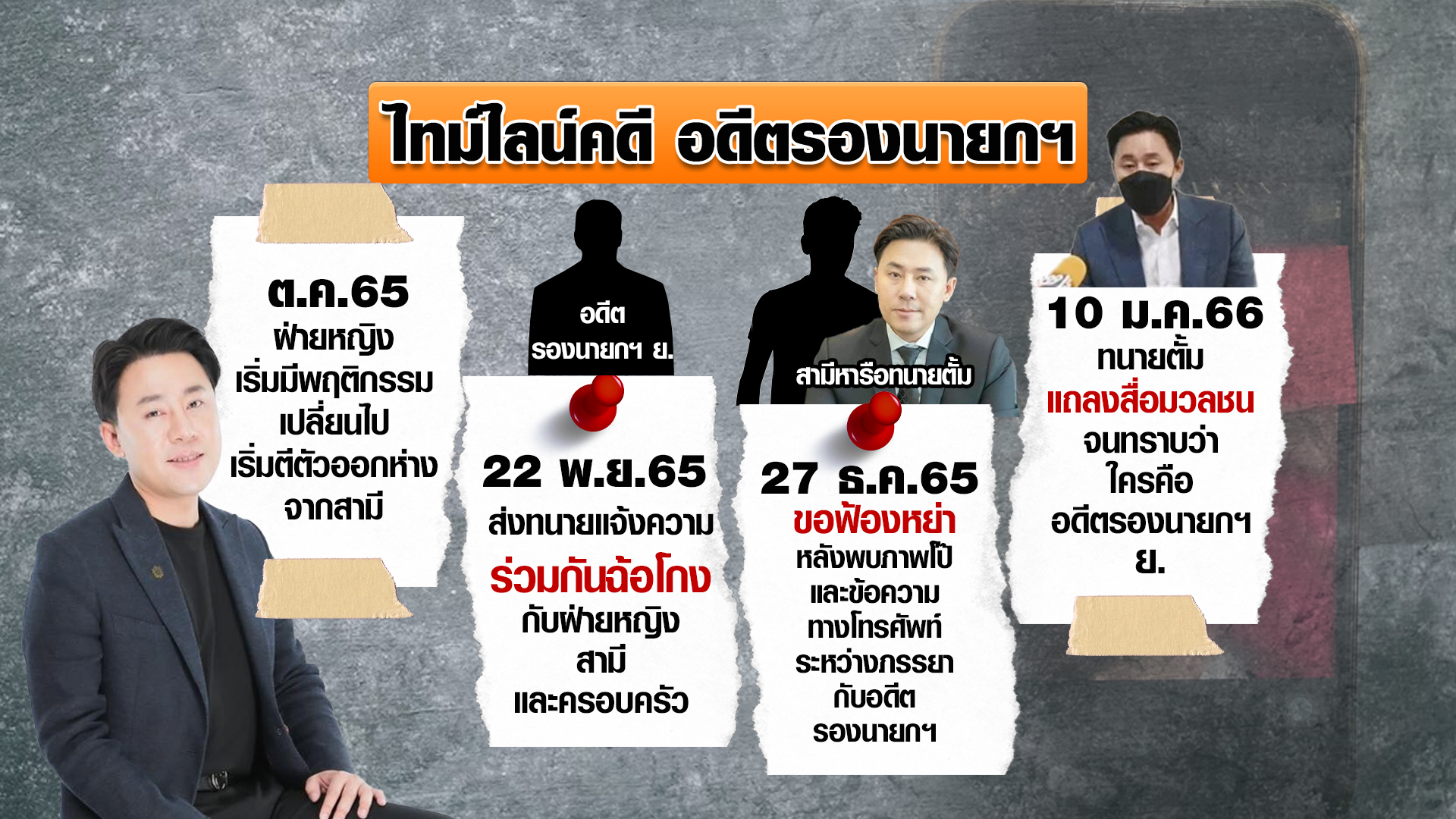 - 10 ธันวาคม 2565 แถลงสื่อมวลชน จนทราบว่าใคร คือ อดีต รองนายกฯ ย.