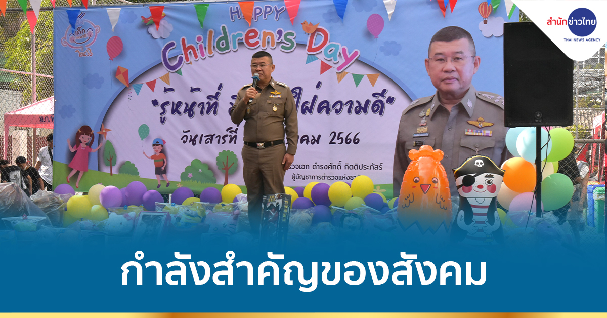 กทม. 14 ม.ค.- ผบ.ตร.ร่วมกิจกรรมงานวันเด็ก แฟลตตำรวจเฉลิมลาภ มุ่งหวังเด็กเติบโต รู้หน้าที่ ความรับผิดชอบต่อสังคม ให้ตำรวจทั่วประเทศร่วมกิจกรรมมอบความสนุกสนาน ดูแลความปลอดภัยงานวันเด็ก