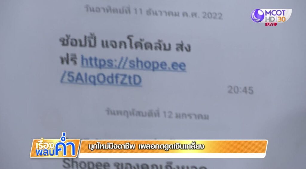 ขณะที่บางคนมีข้อความจากแอปฯ ที่ใช้ช้อปปิ้งออนไลน์ ส่งข้อความมาเป็นลิ้งให้กดรับส่วนลดเพิ่ม ซึ่งมาในช่องข้อความเดียวกันกับช่องแชททางการที่ใช้เป็นประจำ คาดว่ามิจฉาชีพเจาะระบบเข้าไปเพื่อส่งลิ้งมาหลอก จึงเผลอกดเข้าไป มิจฉาชีพยังแชทสวมรอยเป็นเจ้าหน้าที่แอปฯ ช้อปปิ้ง หลอกให้โหลด และลงทะเบียนอีกแอปฯ จากนั้นเงินทั้ง 4 บัญชีก็ถูกโอนออกทุกบัญชี รวมเป็นเงินนับแสนบาท ทั้งที่ไม่เคยผูกบัญชีไว้กับแอปฯ ช้อปปิ้งแต่อย่างใด ขณะที่เจ้าหน้าที่เตือนอย่าผูกบัญชีกับแอปฯ ช้อปปิ้งออนไลน์ หรือกดลิ้งแปลกๆ ที่ส่งเข้ามา ไม่ว่าจะมีข้อความชวนเชื่อก็ตาม. -สำนักข่าวไทย