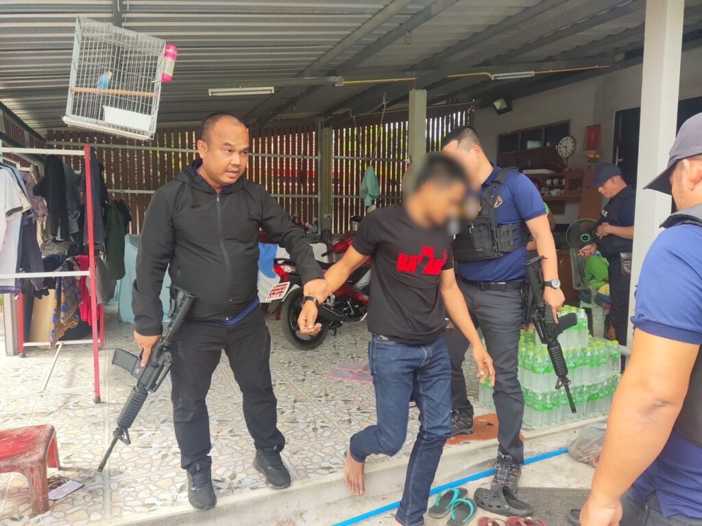กองบัญชาการตำรวจสอบสวนกลาง (CIB) โดยกองบังคับการปราบปราม ภายใต้การอำนวยการของ พล.ต.ท.จิรภพ ภูริเดช ผบช.ก., พล.ต.ต.มนตรี เทศขัน ผบก.ป., สั่งการให้เจ้าหน้าที่ชุดจับกุม นำโดย พ.ต.อ.วิระชาญ ขุนไชยแก้ว ผกก.5 บก.ป., พร้อมด้วยตำรวจ กก.5 บก.ป. และชุดปฏิบัติการพิเศษหนุมาน ร่วมกันจับกุมผู้ต้องหา 2 ราย คือ นายภาณุพงษ์ หรือปอนด์ และนายทวีศักดิ์ หรือหนึ่ง ผู้ต้องหาตามหมายจับศาลจังหวัดเวียงสระที่ 14/2566 ลงวันที่ 23 มกราคม 2566 ซึ่งถูกกล่าวหาว่า “ร่วมกันฆ่าผู้อื่นโดยเจตนา โดยไตร่ตรองไว้ก่อน, ร่วมกันมีอาวุธปืน และเครื่องกระสุนปืนไว้ในความครอบครองโดยไม่ได้รับอนุญาต และร่วมกันพาอาวุธปืนติดตัวไปในเมือง หมู่บ้าน ทางสาธารณะ โดยไม่ได้รับอนุญาต หรือมีเหตุจำเป็นเร่งด่วนตามสมควรแก่พฤติการณ์”