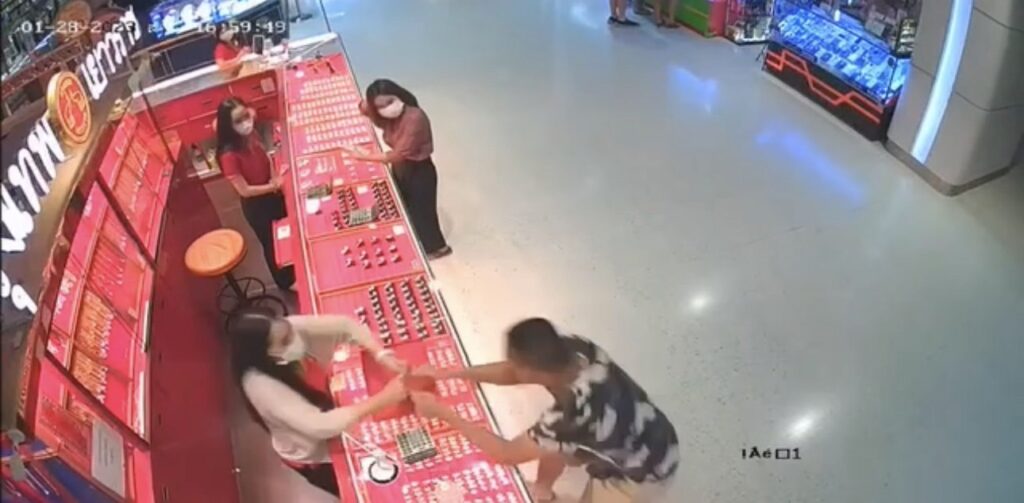 นนทบุรี 29 ม.ค. – คนร้ายชิงทอง ห้างดังย่านปากเกร็ด ถูกตำรวจสอบสวนกลาง CIB รวบทันควัน ขณะทำธุระอยู่ในห้างได้ยินเสียงตะโกนจึงวิ่งไล่ตามจนจับตัวได้