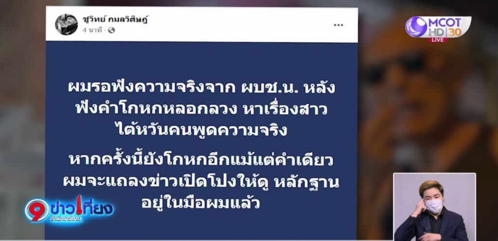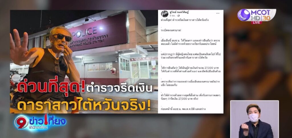 หลังเมื่อคืนที่ผ่านมา นายชูวิทย์ กมลวิศิษฎ์ อดีตนักการเมือง โพสต์ข้อความผ่านเฟซบุ๊ก จั่วหัวว่า “ด่วนที่สุด! ตำรวจรีดเงินดาราสาวไต้หวันจริง” พร้อมระบุว่า ระเบิดลงนครบาล! เมื่อเย็นนี้ ผบช.น.ให้โฆษกฯ แถลงข่าวยืนยันว่า ตรวจสอบแล้ว ไม่มีตำรวจห้วยขวางเรียกรับผลประโยชน์ แต่ปรากฏว่ามีผู้หญิงคนไทย แฟนเป็นคนสิงคโปร์ ที่ไปร่วมวงสังสรรค์กินเหล้ากับดาราสาวไต้หวัน ให้การยืนยันว่าได้เป็นผู้จ่ายเงินจำนวน 27,000 บาท ให้กับตำรวจที่ตั้งด่านด้วยตัวเอง! และมีคลิปยืนยันด้วย เพราะเห็นว่าการแถลงข่าวเมื่อเย็นของนครบาลยังปากแข็ง ไม่ยอมรับ ทำให้ตำรวจห้วยขวางชุดที่ตั้งด่าน เพิ่งรับสารภาพสดๆ ร้อนๆ ว่ารีดเงิน 27,000 บาท จริง!