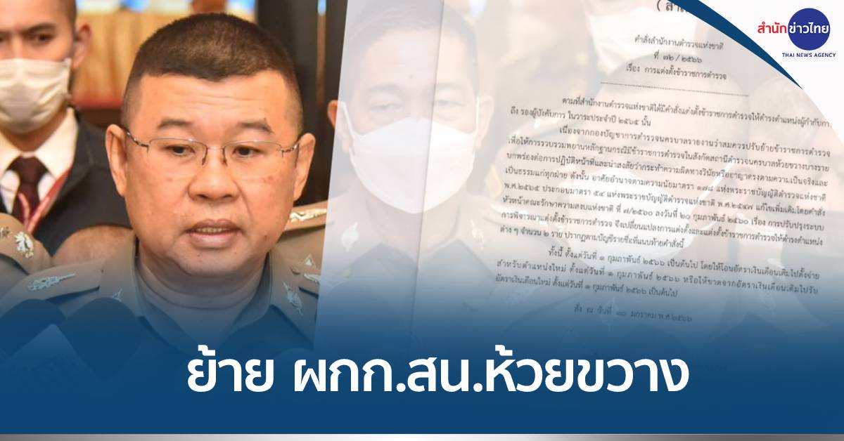 ทั้งนี้ ตั้งแต่วันที่ 1 กุมภาพันธ์ 256 เป็นต้นไป โดยให้โอนอัตราเงินเดือนเติมไปตั้งจ่ายสำหรับตำแหน่งใหม่ ตั้งแต่วันที่ 1 กุมภาพันธ์ 2566 หรือให้ขาดจากอัตราเงินเดือนเดิม ไปรับอัตรางินเดือนใหม่ ตั้งแต่วันที่ 1กุมภาพันธ์ 2566 เป็นต้นไป สั่ง ณ วันที่ 30มกราคม พ.ศ.2566.-สำนักข่าวไทย
