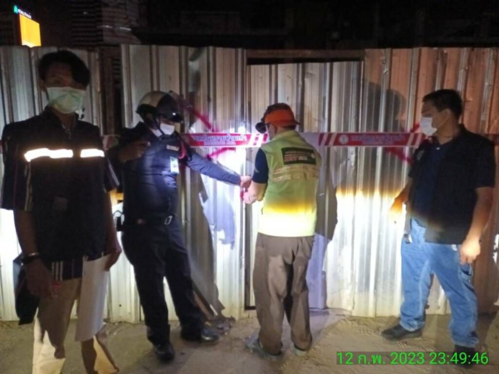 เมื่อเวลา 23.46 น.วานนี้ (12 ก.พ.) นายไพฑูรย์ งามมุข ผู้อำนวยการเขตห้วยขวาง ปฏิบัติราชแทนผู้ว่าราชการกรุงเทพมหานคร เจ้าพนักงานท้องถิ่น ออกคำสั่งปิดประกาศและกั้นบริเวณดังกล่าวห้ามใช้ทันทีทุกอาคารที่เกี่ยวข้องกับการก่อสร้าง โดยอาคารดังกล่าวตั้งอยู่ที่ถนนกำแพงเพชร 7 แขวงบางกะปิ เขตห้วยขวาง กรุงเทพมหานคร รหัสไปรษณีย์ 10310 มีสภาพหรือมีการใช้ที่อาจเป็นภยันตรายต่อสุขภาพ ชีวิต ร่างกาย หรือทรัพย์สิน/อาจไม่ปลอดภัยจากอัคคีภัย/ก่อให้เกิดเหตุรำคาญ/กระทบกระเทือนต่อการรักษาคุณภาพสิ่งแวดล้อม จึงอาศัยอำนาจตามความในมาตรา 46 วรรคหนึ่ง แห่งพระราชบัญญัติควบคุมอาคาร พ.ศ. 2522 ประกอบกับข้อ 7 แห่งกฎกระทรวง ฉบับที่ 47 (พ.ศ. 2540) ออกตามความในพระราชบัญญัติควบคุมอาคาร พ.ศ. 2522