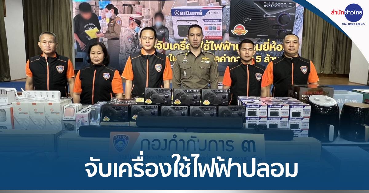 กรุงเทพฯ 13 ก.พ.- ตำรวจ ปคบ.ลุยค้น 4 จุด แหล่งผลิตและเก็บเครื่องใช้ไฟฟ้าปลอมยี่ห้อดัง-สินค้าไม่มี มอก. ยึดของกลางหลายพันรายการ มูลค่าความเสียหายรวมประมาณ 2.5 ล้านบาท