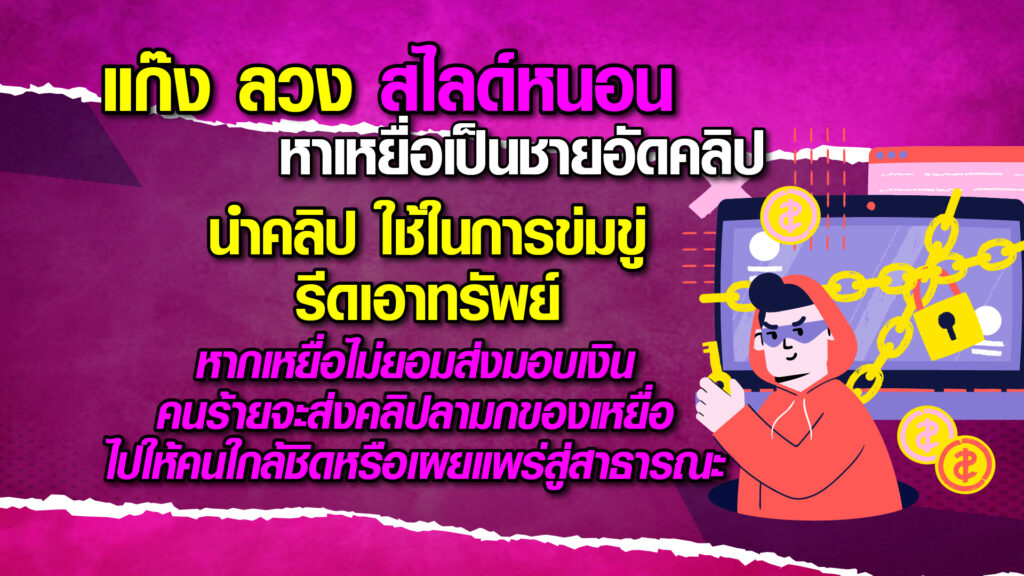 พ.ต.อ.ศิริวัฒน์ ดีพอ รองผู้บังคับการปราบปรามการกระทำความผิดเกี่ยวกับอาชญากรรมทางเทคโนโลยี (รอง ผบก.ปอท.) ในฐานะโฆษกกองบัญชาการตำรวจสอบสวนกลาง กล่าวว่า ปัจจุบันพบชายไทยจำนวนมาก ไม่ว่าเด็ก ผู้ใหญ่ ได้รับความเสียหายจากการถูกนำเอาภาพ หรือคลิปลามกขณะกำลังช่วยตัวเองมาใช้ข่มขู่หรือรีดเอาทรัพย์ ซึ่งมีสาเหตุมาจากที่คนร้ายมีคลิปวิดีโอลามกของเหยื่อไว้ในครอบครอง ทำให้เหยื่อได้รับความเสียหาย ทั้งในรูปของทรัพย์สิน และชื่อเสียง