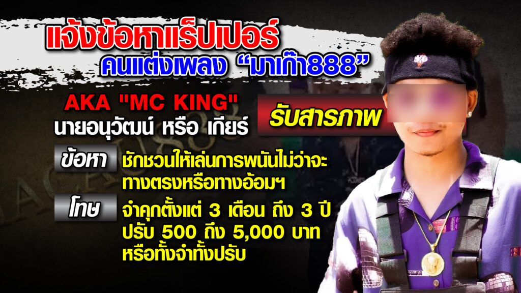 พลตำรวจตรีวิวัฒน์ คำชำนาญ รองผู้บัญชาการตำรวจสืบสวนสอบสวนอาชญากรรมทางเทคโนโลยี หรือ สอท. เปิดเผยหลังสอบปากคำนายอนุวัฒน์ หรือ เกียร์ แรปเปอร์ที่รู้จักกันทั่วไปในชื่อ “MC KING” ผู้ที่แต่งและร้องเพลงโฆษณาเว็บพนันออนไลน์ “มาเก๊า888” รวมทั้งนางสาวธันยกานต์ และนางสาวมิรา พริตตี้ที่เต้นในมิวสิควิดีโอมาเก๊า 888 หลังเชิญตัวมาให้ข้อมูลเมื่อวานนี้ (21 ก.พ.)