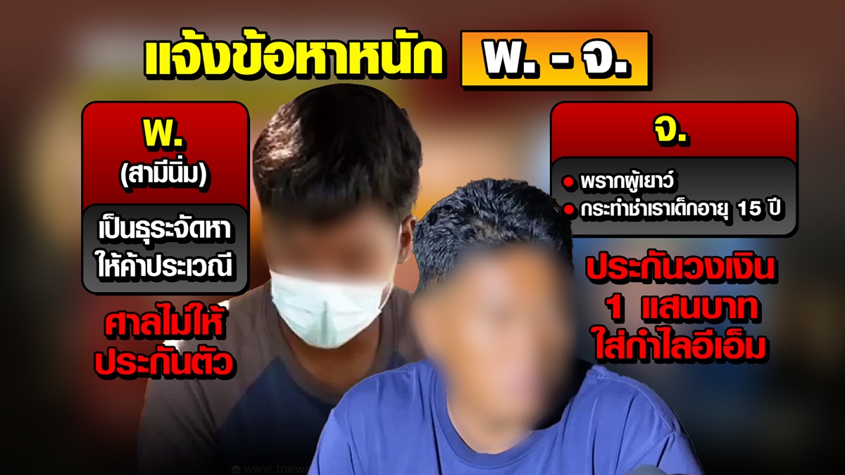 ขณะที่อีก 2 คน ทางตำรวจ สภ.บางหลวง ได้แจ้งข้อหาไปก่อนหน้านี้ คือ นาย พ. และนาย จ. โดยนาย พ. ถูกดำเนินคดีข้อหาเป็นธุระจัดหาให้กระทำการค้าประเวณี จากกรณีพาภรรยาไปขายบริการให้กับนาย จ. ซึ่งเป็นเพื่อนของพ่อ โดน 2 ข้อหา คือ พรากผู้เยาว์และกระทำชำเราเด็กอายุต่ำกว่า 15 ปี แต่ศาลอนุญาตให้ประกันตัวนาย จ. ด้วยวงเงิน 100,000 บาท โดยให้ใส่กำไลอีเอ็ม ติดตามพฤติกรรม ส่วนนาย พ. ศาลไม่ให้ประกันตัวตามคำร้องของพนักงานสอบสวน. – สำนักข่าวไทย