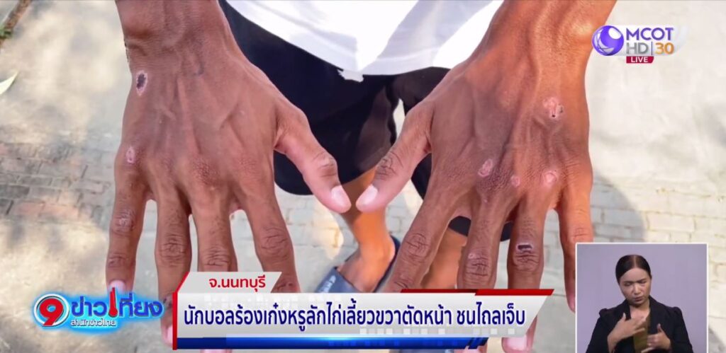 ด้านแฟนสาวนักบอล พูดทั้งน้ำตา ไม่คิดว่าคู่กรณีที่ขับรถหรูคันละหลายล้าน จะขับตัดหน้าจนทำให้เกิดอุบัติเหตุได้รับบาดเจ็บ แต่ไร้จิตสำนึกลงมาดูพูดคุยรับผิดชอบ. – สำนักข่าวไทย