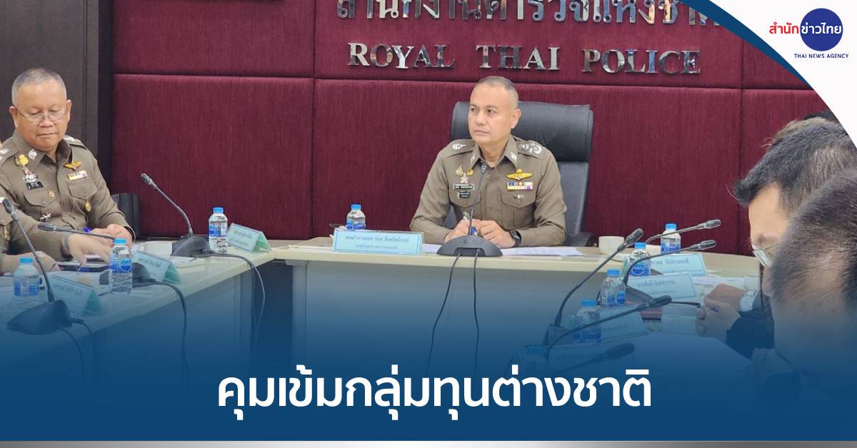 สตช. 10 มี.ค.- ผบ.ตร.มอบ “พล.ต.อ.รอย” รอง ผบ.ตร. คุมเข้มกลุ่มทุนต่างชาติเข้ามาทำธุรกิจผิดกฎหมายตามนโยบายรัฐบาล เรียกประชุมหน่วยเกี่ยวข้อง วางมาตรการระยะเร่งด่วน ระยะกลาง และระยะยาว พร้อมเตรียมเปิดปฏิบัติการตรวจสอบเป้าหมายกว่า 100 จุดทั่วประเทศ