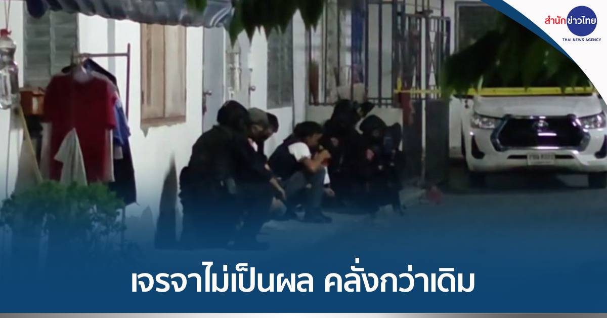 ทั้งนี้ พบว่าในบ้านของ พ.ต.ท. คนดังกล่าว มีทั้งปืนและมีด จึงไม่สามารถเข้าไปภายในบ้าน หรือชาร์จตัวได้ เจ้าหน้าที่พยายามใช้วิธีละมุนละม่อมให้มากที่สุด
