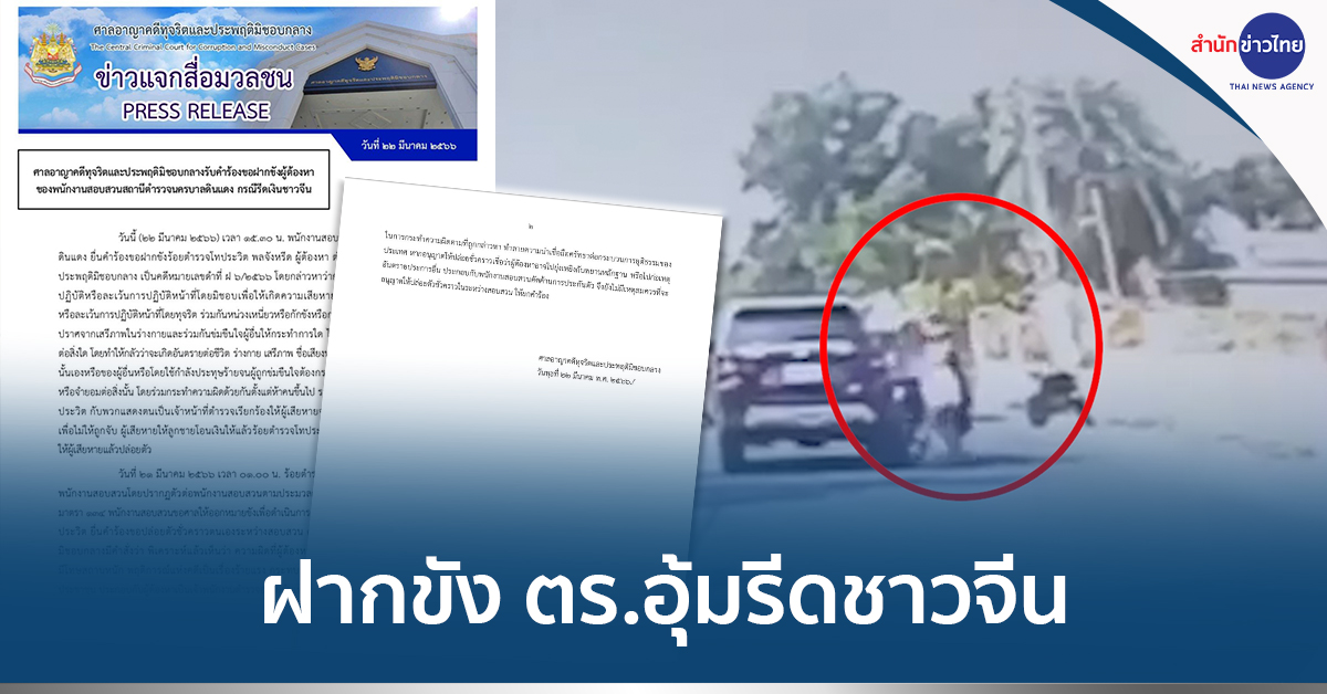 กทม. 22 มี.ค.- ศาลอาญาคดีทุจริตและประพฤติมิชอบกลางรับคำร้องขอฝากขังผู้ต้องหาของพนักงานสอบสวนสถานีตำรวจนครบาลดินแดง กรณีรีดเงินชาวจีน