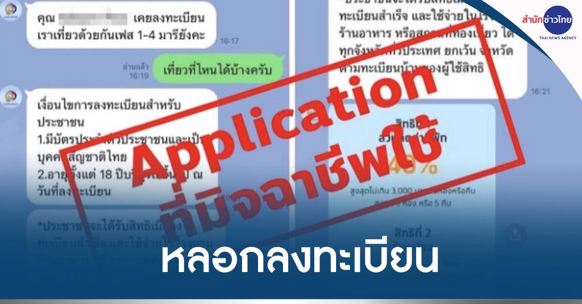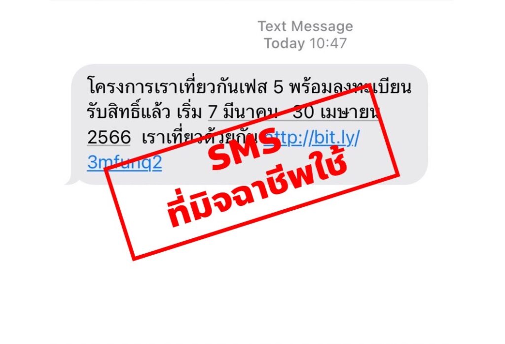 กทม. 26 มี.ค.-ตำรวจไซเบอร์ เตือนภัยกลโกงมิจฉาชีพ ส่ง SMS หลอกให้ลงทะเบียนรับสิทธิเราเที่ยวด้วยกันเฟส 5